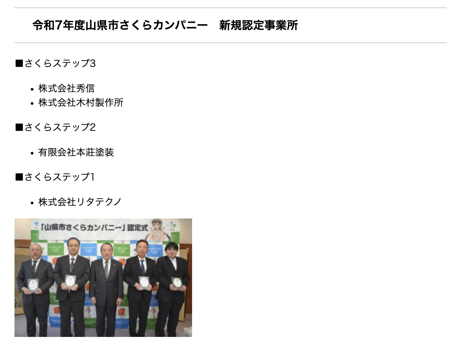山県市さくらカンパニーに新たに認定されました